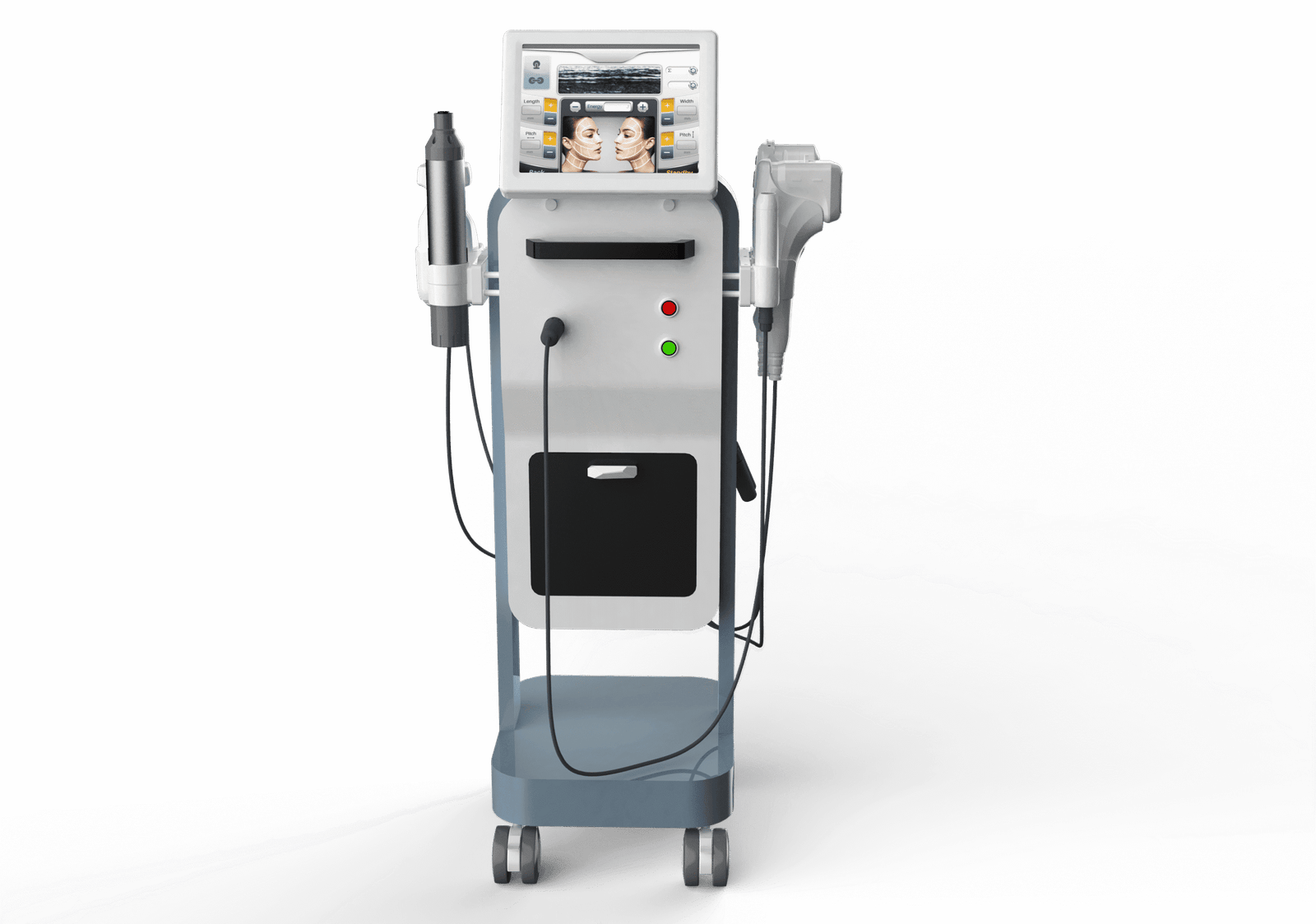 - A vertical 4D HIFU device with a user-friendly UI and high-precision face and body cartridges. This can be used for body contouring, wrinkle reduction, and face lifting.